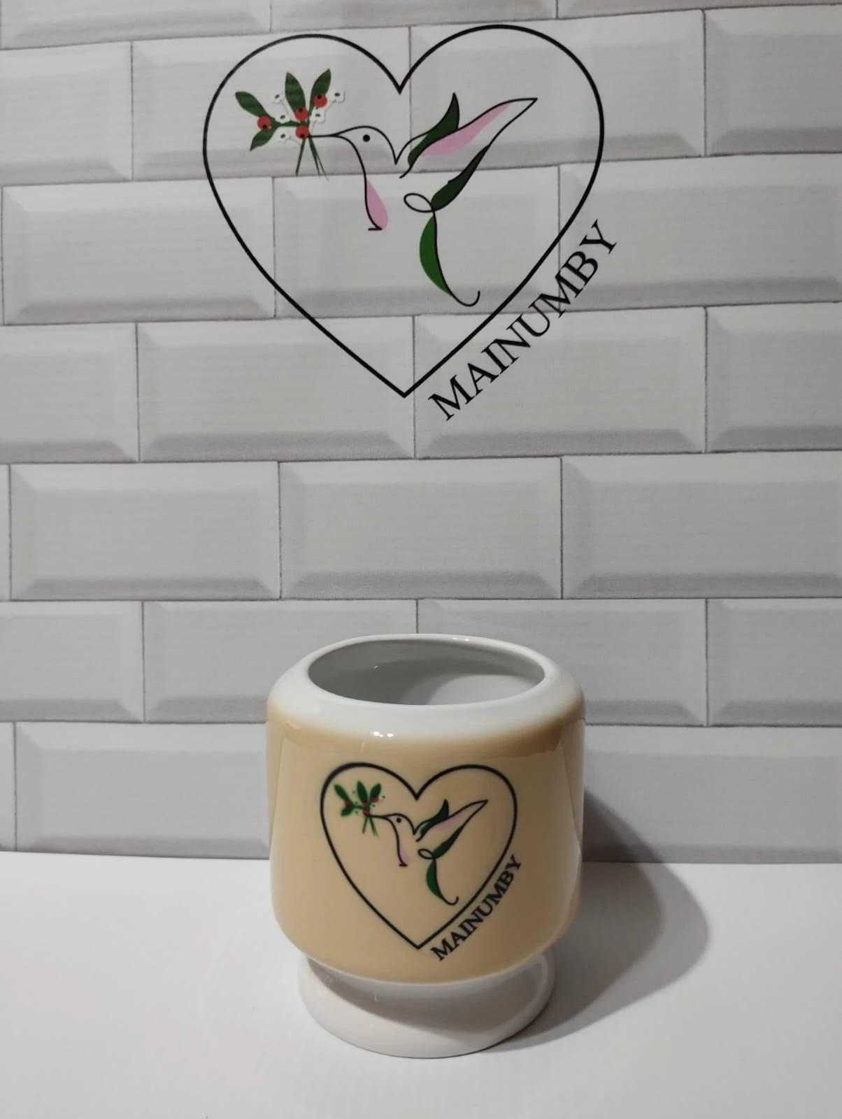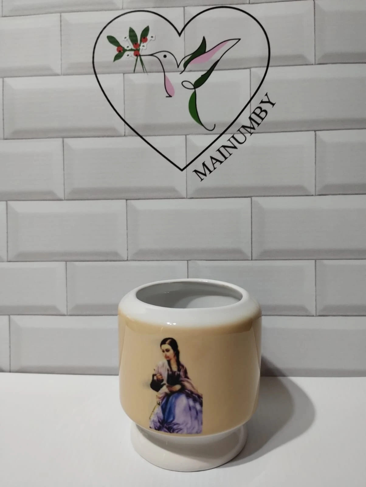 Este bello mate cuenta con la imagen de la Virgen en su versión Gaucha cebando mate en un lado y del otro el logo de la marca.